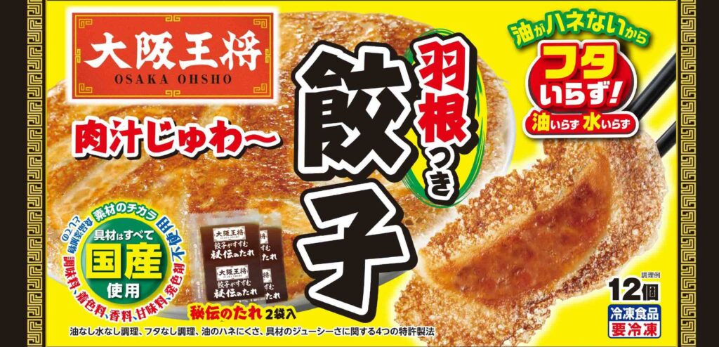 冷凍餃子の競合商品であるイートアンドフーズの「大阪王将 羽根つき餃子」はこのフタなし調理を魅力の一つにしていました。ご自宅にフライパンに合うフタを持っていない、フタを使うと洗い物が増える、などの消費者ニーズがあり、人気のポイントになっています。