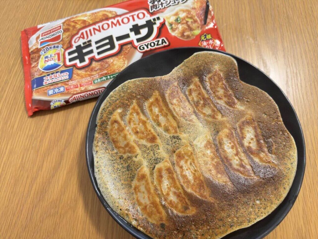 旧ギョーザはフタについた水分が一部フライパンに落ち、羽根が少し崩れてしまいましたが、新ギョーザはフタなしのため全体がきれいに焼き上がりました。さらに今回の改良では「IHクッキングヒーターでも均一に焼き色がつき、羽根がパリッとキレイに仕上がるように」されたそうで、よりきれいな羽根が作りやすくなったと思います。