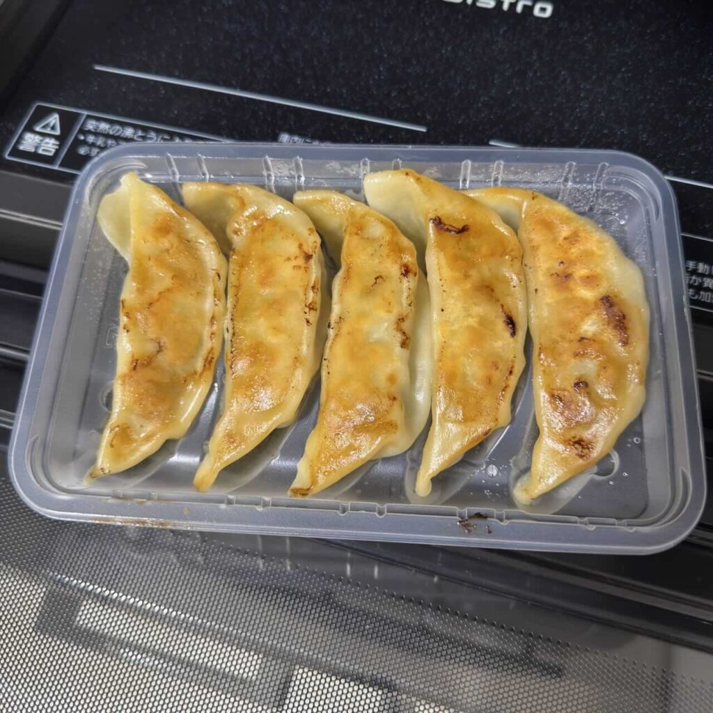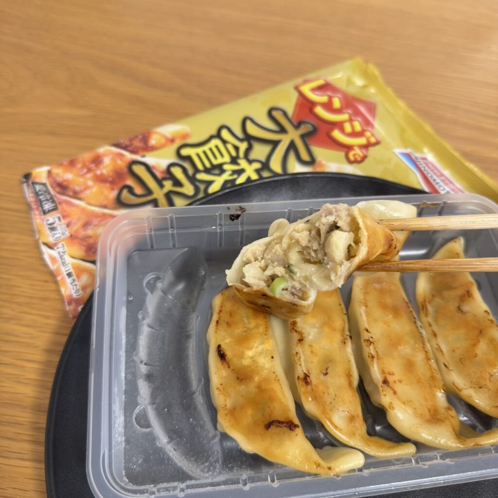 フライパンで焼く必要がなく、電子レンジで600W 2分40秒加熱するだけで、おいしい餃子が楽しめるのはとてもありがたいですね。