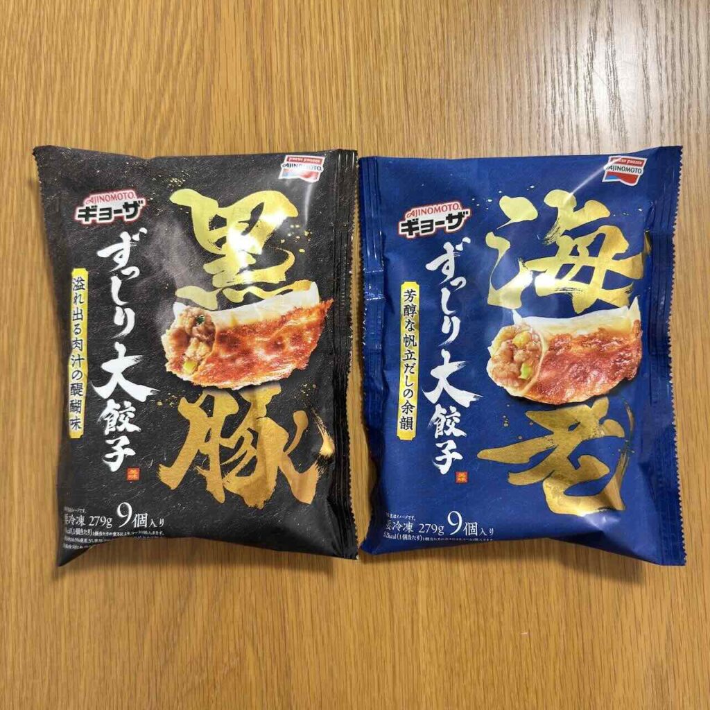 どちらの商品も本格的で贅沢な味わいで、高級中華料理店で味わう餃子のようです。「ずっしり大餃子 海老」は、蝦醤(シャージャン)や帆立だしがきいた芳醇な味わいで、噛むほどに魚介の旨みを感じます。さらにプリッとした海老の食感もよく、高級感のある餃子です。「ずっしり大餃子 黒豚」は、肉汁あふれる黒豚と、ゴロッとした肉の食感が特長で、XO醤や魚醤による深みのある濃厚な味わいを楽しめます。既存品も私はとても味の評価が高くおすすめしていましたが、価格面で売場が限られていたので、今後はより多くの売場に並ぶと良いですね。