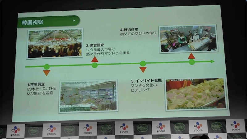 開発ストーリーも紹介。韓国でのマンドゥ試食や商品開発への参加など、裏話を交えながら、“マンドゥと餃子のいいとこ取り”を目指した商品であることを解説し、今後もマンドゥシリーズをたくさんの人に届けること、マンドゥという文化や魅力を知ってもらうことを目標に掲げました。