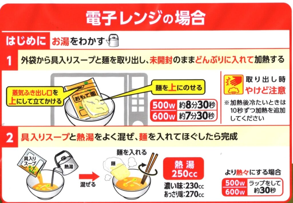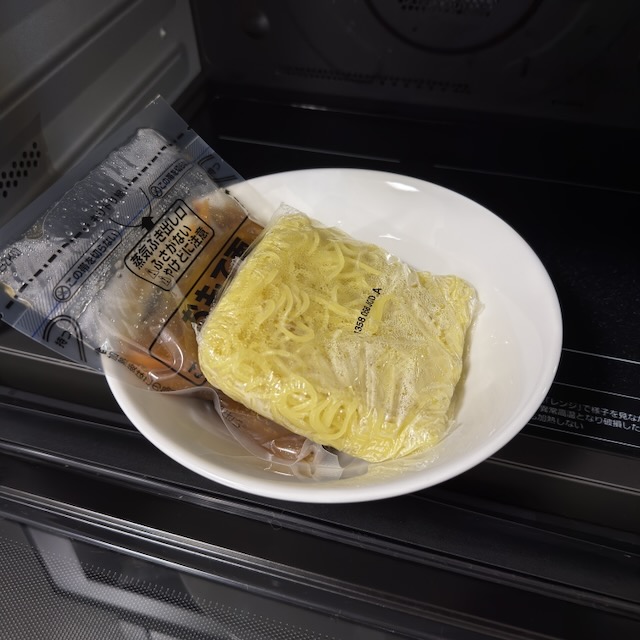 実際に調理をしましたが、電子レンジで加熱した際に、具入りスープは解凍され温まっていましたが、麺は硬くなったり品質を落とすことはありませんでした。
