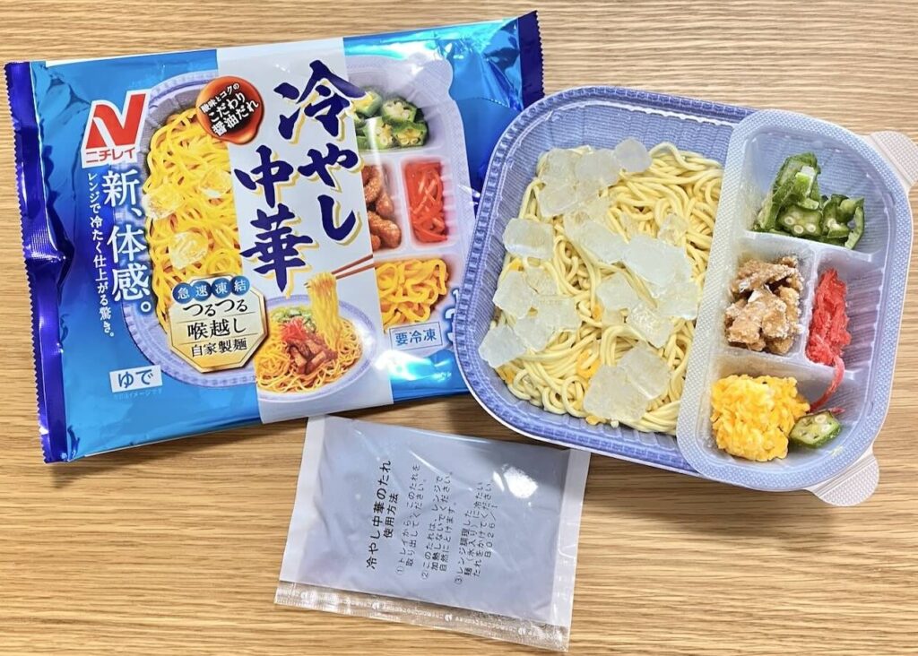 2022年3月にニチレイフーズから発売された「冷凍冷やし中華」は大ヒットしました(当日の発売リリースはこちら)。電子レンジで加熱をしながらも最後には冷たく仕上がるという面白さと、確かな美味しさからテレビやその他メディアなどでも多く取り上げられました。私自身も2022年はこの冷凍冷やし中華を紹介する機会がかなり多かったです。
