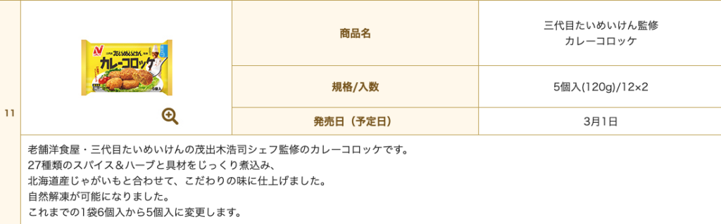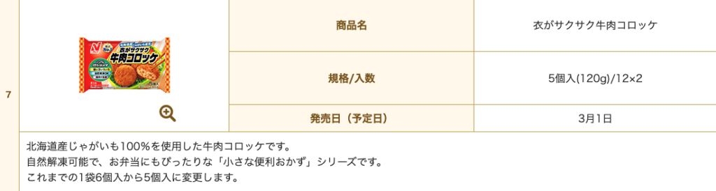 お弁当用冷凍食品、牛肉コロッケ6個入から5個入に変更