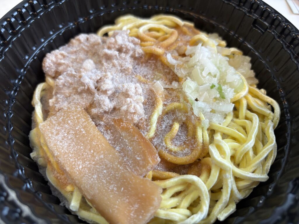 袋を手にした瞬間にまず感じるのは、冷凍のラーメンなのにトレイ付きという便利さだ。皿を用意する必要もなければ、鍋にかける必要もなく、文字通り「袋から出してそのままレンジへ」という手軽な商品だ。