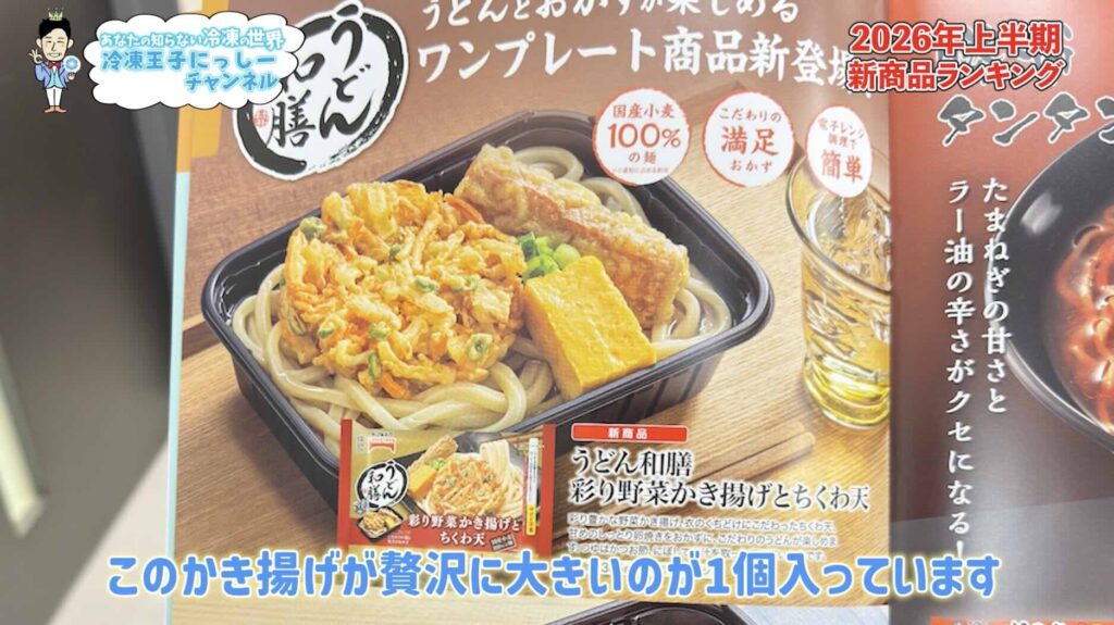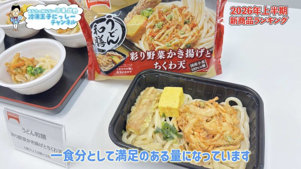 第1位は、テーブルマーク「うどん和膳 彩り野菜かき揚げとちくわ天」です。今回もかなり悩みました。正直ベスト5はどれも1位でも良いと思っていますが、あえて選ぶならこの商品にしました。