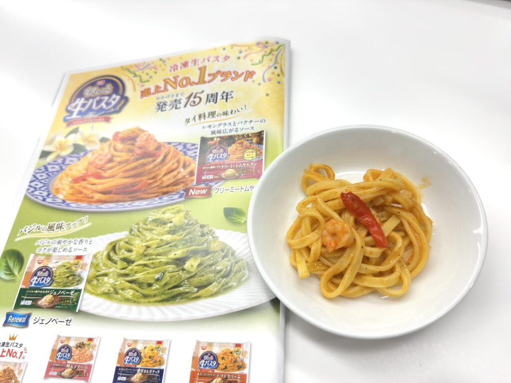 この冷凍パスタシリーズに新商品が登場します。日清食品ではカップ麺の「カップヌードル パクチー香るトムヤムクン」が人気で私も好きな商品ですが、この本格的なトムヤムクンを再現する技術が、冷凍パスタにも活かしています。