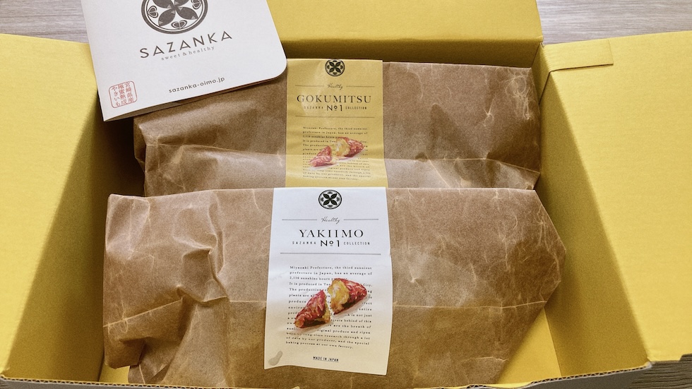 SAZANKAのオンラインショップでは、一度焼きで糖度50度以上の「熟成やきいも」と、二度焼きで最高糖度80度の「極蜜熟成やきいも」の食べ比べセットがあるようです。