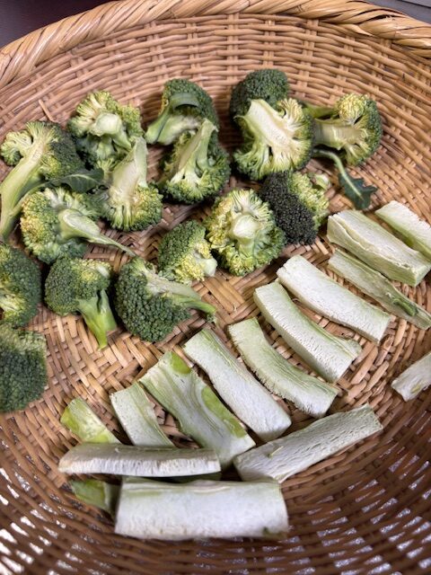 ①ブロッコリーを房と茎に分けて干す。(上記と同じように)