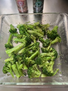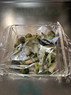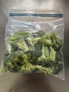 (夏場は干してからすぐですと熱がこもっているので、すぐに冷凍すると水滴がでるので、ブロッコリーを少し置いて温度を下げてから冷凍します)