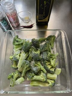 上記のように干したブロッコリーを使います。同時につくっておくと便利な一品です。