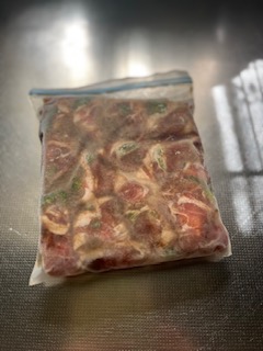 調味液を全体に行き渡らせる、空気を抜いて、保存袋を閉めて冷凍する。