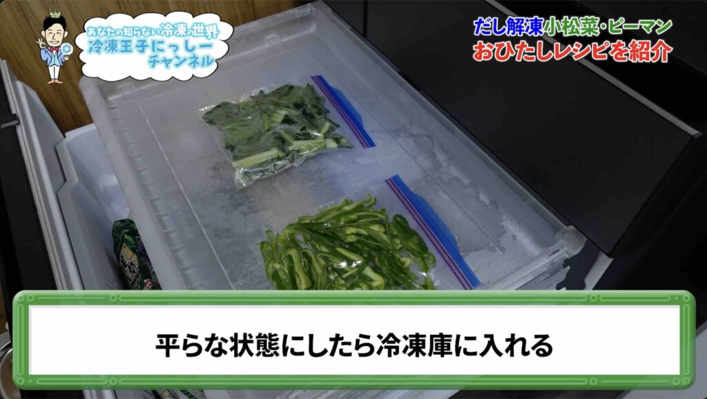 今回のレシピだけに限りませんが、野菜を冷凍するときは新鮮なものを使うのが鉄則。新鮮であればあるほどおいしくて栄養価も高いので、鮮度のよいうちに冷凍してしまいましょう。特にだし解凍は最後に加熱しないため、新鮮さは衛生面にも、おいしさにもつながる重要ポイントです。