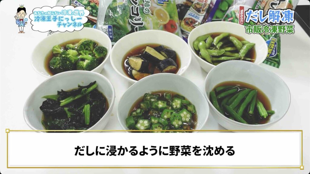 また、「野菜を切って冷凍しておくのすら面倒」という方のために、市販の冷凍野菜をだし解凍する方法もあります。