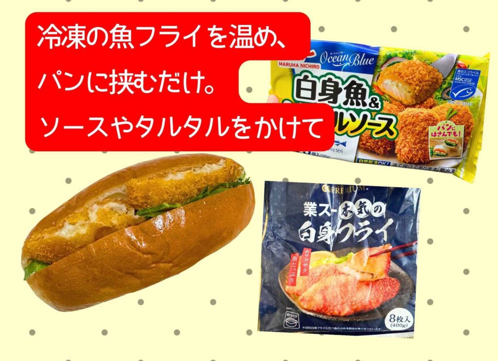 冷凍の魚フライを温めて、パンに挟むだけ。
