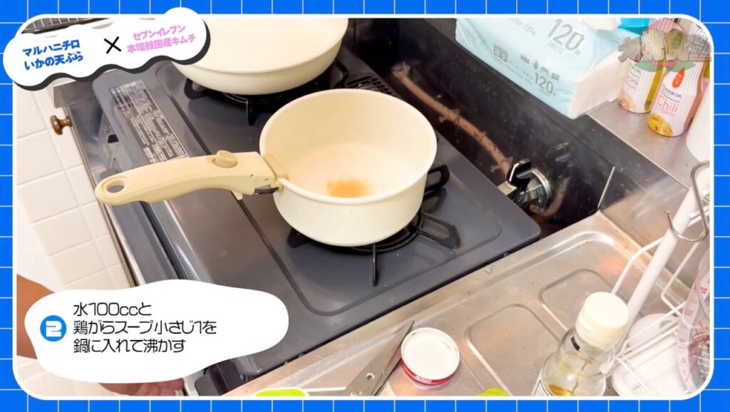 前回に続き、冷凍いかの天ぷらとキムチを使ったアレンジレシピです。