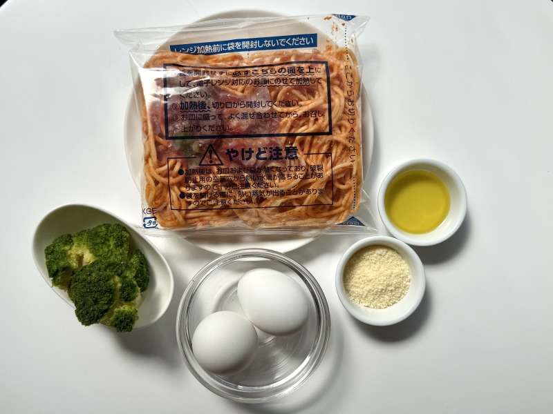 ①冷凍パスタは表示通りに加熱する。