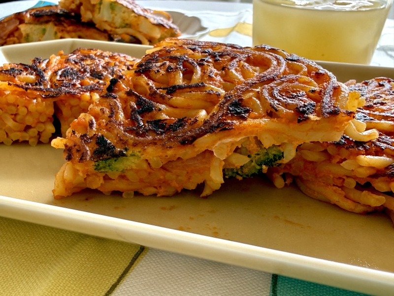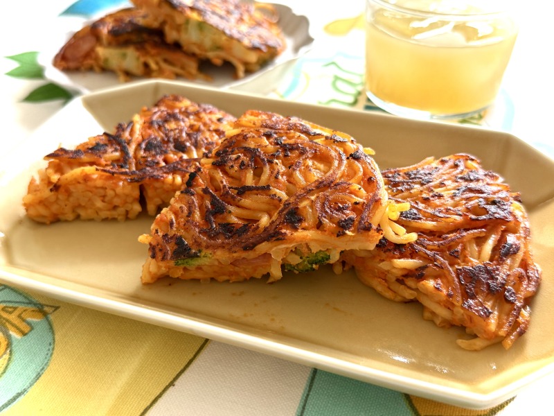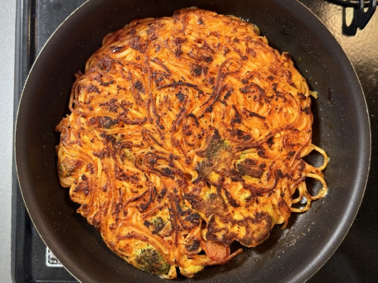 焼き色の香ばしさ、カリカリの食感、卵とスパゲティの食べごたえもある1品になりました!