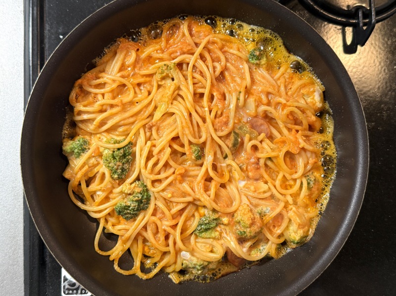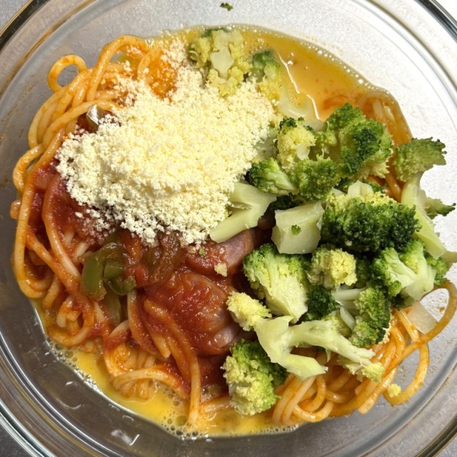 冷凍パスタでスパニッシュオムレツ