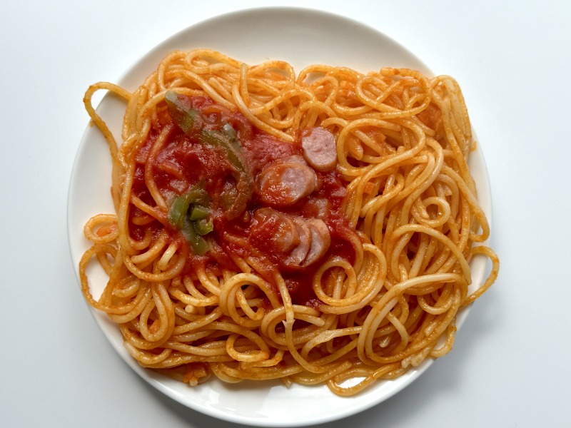 直火炒めで香ばく野菜の甘味が感じるソテースパゲティのナポリタンは、具にソーセージやピーマンが入っていました。