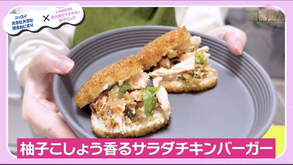 ももせは、冷凍食品の「ニッスイの焼きおにぎり」と、コンビニ食材の「ローソンの炭火焼サラダチキン 柚子こしょう」という最強タッグを使って、どんなアレンジに挑戦したのでしょうか?