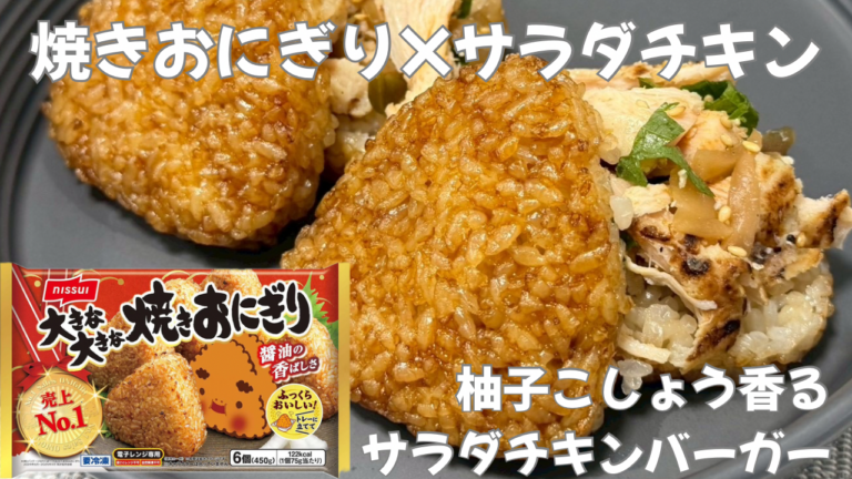 「冷凍焼きおにぎり×サラダチキン」時短!!柚子こしょう香るサラダチキンバーガー