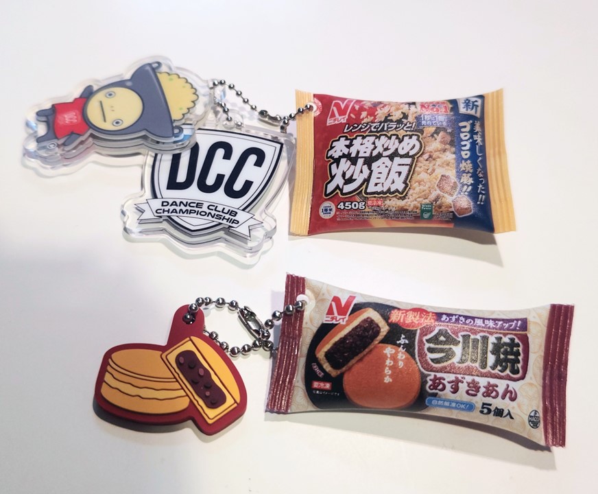 お土産は今川焼あずきあんと本格炒め炒飯のオリジナルミニチュアキーホルダー。あずきが立体的にデコボコしていてこだわりがすごいです!