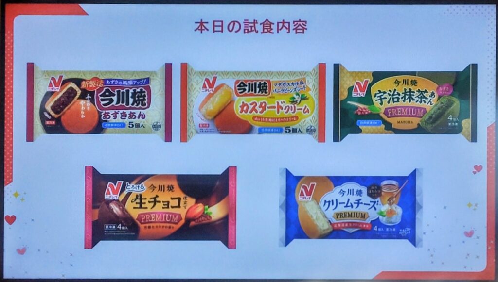 そしていよいよ今川焼の試食タイムです。今回は5種類、用意されていました。