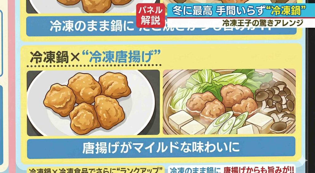 こちらも平井侑貴アナウンサーは「いやーーー(笑)」とにわかに信じがたい様子。しかし、一般に鍋の具材として鶏肉を入れることはよくある上、だしを吸って唐揚げの味がマイルドになり、より一層おいしくなるのです。