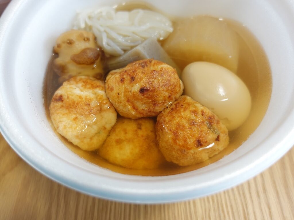 ※おでんに冷凍たこ焼きを入れた写真