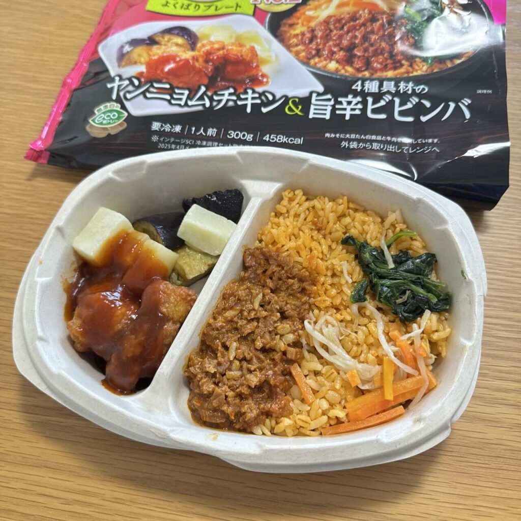 ※ニップン ワンプレート冷凍食品「よくばりプレート ヤンニョムチキン&4種具材の旨辛ビビンバ」