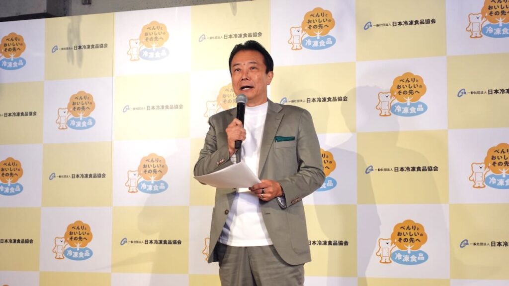 日本冷凍食品協会の藤江太郎会長は冒頭の挨拶で、「冷凍食品はそのおいしさ、便利さ、豊富さが評価され、年々市場は拡大し続けています」と説明。さらに、今回のイベントを立ち上げた背景として、「忙しく、タイパを重視する若い世代やファミリー層に向けて、手間抜きのライフスタイルを提案したいと思っている。冷凍食品を使って手間を抜いてもらうことで、おいしくごはんを楽しんでいただきたい。冷凍食品を使ったアレンジメニューの試食を通して、冷凍食品の魅力や価値を再発見してもらえれば」と解説します。