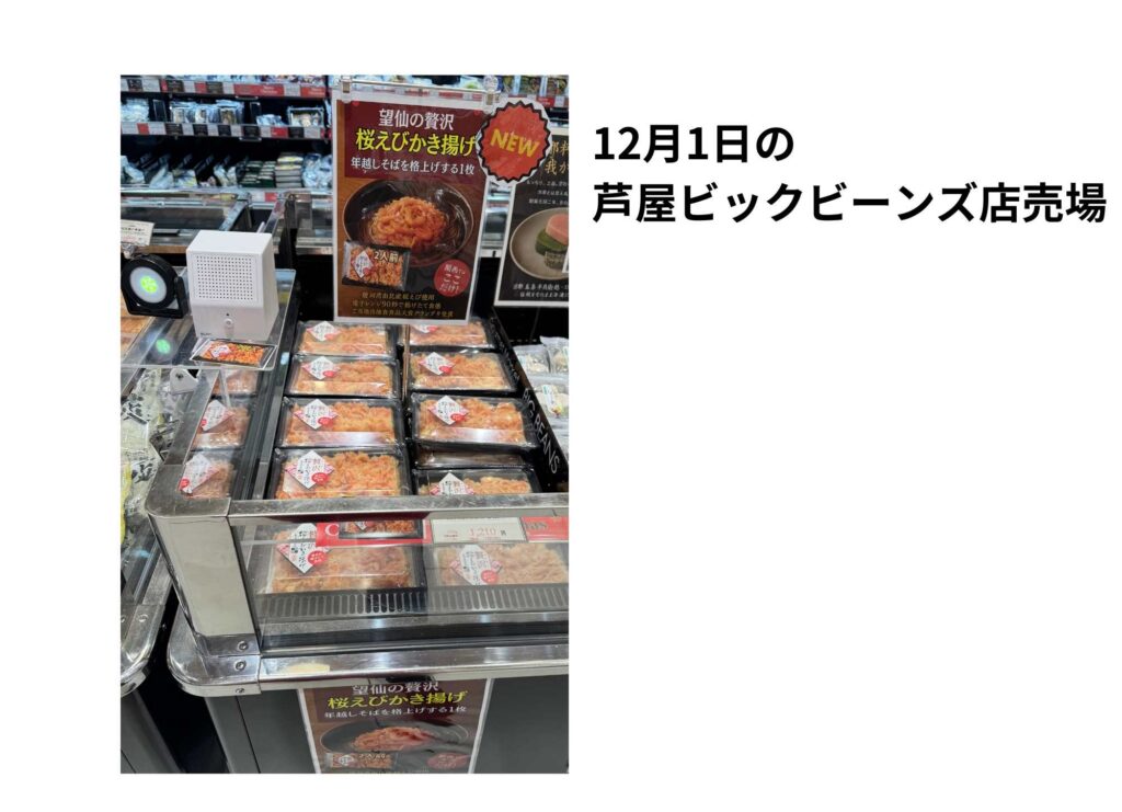 12月1日、ビックビーンズ芦屋店にて先行採用され、見事完売。